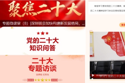 2022.11.15[二十大学习]深学笃行 凝聚奋进力量 迅速兴...听陈诉、谈体会,话落实、启新篇。学习宣传贯彻党的二十大精神是当前和今后一个时期全党全国的首要政治任务,凭据上级党委总体部署,南郊农场所属德茂物业公司精心部署、周密组织,通过“集中学习+自学”“线上+线下”相结合方式,公司上下迅速兴起学习贯彻党的二十大精神热潮。 线下集中学。德茂物业公司把学习党的二十...点击阅读 > -