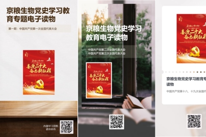 2022.10.20[二十大学习]京粮生物科技打造党史学习新方...为深入学习贯彻习近平新时代中国特色社会主义思想,结合党史学习教育常态化长效化要求,京粮生物科技党委不停创新党史学习教育方式要领,在公司上下掀起“喜庆二十大 奋进新征程”党史学习的浓厚气氛,制作党史学习教育专题电子读物,向党的二十大胜利召开,献上了一份特殊的“礼物——京粮生物科技党史学习教育专题电子读...点击阅读 > -