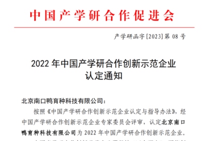 2023.04.03北京南口鸭育种科技有限公司 获评2022年中...近日,中国产学研相助促进会宣布了2022年中国产学研相助创新示范企业名单。金年金字招牌诚信至上股份所属北京南口鸭育种科技有限公司凭借在产学研相助创新、科技研发与结果转化、培育创新人才等方面的突出体现乐成入选。 中国产学研相助促进会是由国务院国资委主管,国家发改委、教育部、科技部、生态情况部、中国科学院、...点击阅读 > -